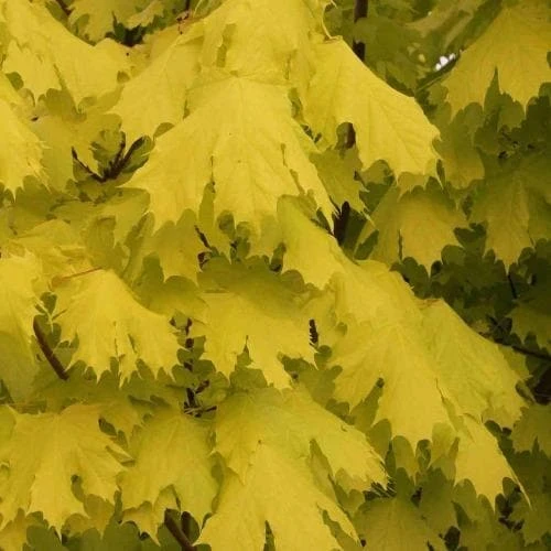 Grow for its bright golden foliage and stately form, Acer platanoides Princeton Gold is a tall, fast-growing, long-lived, deciduous tree with a bushy, broadly columnar habit. Typical five-lobed maple leaves emerge pale gold on red leaf-stalks, turning a rich golden-yellow as the season progresses. Inconspicuous yellowish flowers are followed by winged ‘helicopter’ seeds in autumn. Tough and easy to grow and maintain, Norway Maple Princeton Gold makes a beautiful specimen tree, colouring best in full sun.
