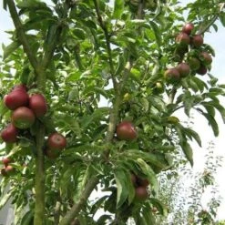 A very old heirloom apple from central Europe, Apple Glockenapfel is primarily a cooking apple, and the favourite variety for making apple strudel. The tree is moderately vigorous, with an upright, spreading habit, and a spur-bearer. Heavy crops of red-streaked green fruit, medium-sized to large and broad at the base, giving an almost bell-like shape; the flesh is pale yellowish-white, crisp and moderately juicy, with a good balance of acid and sweetness. Excellent cooked, when slices retain some shape, but also good eaten fresh when fully ripe. Very good keeper – will keep for 6 months in suitable conditions. Scab-resistant.