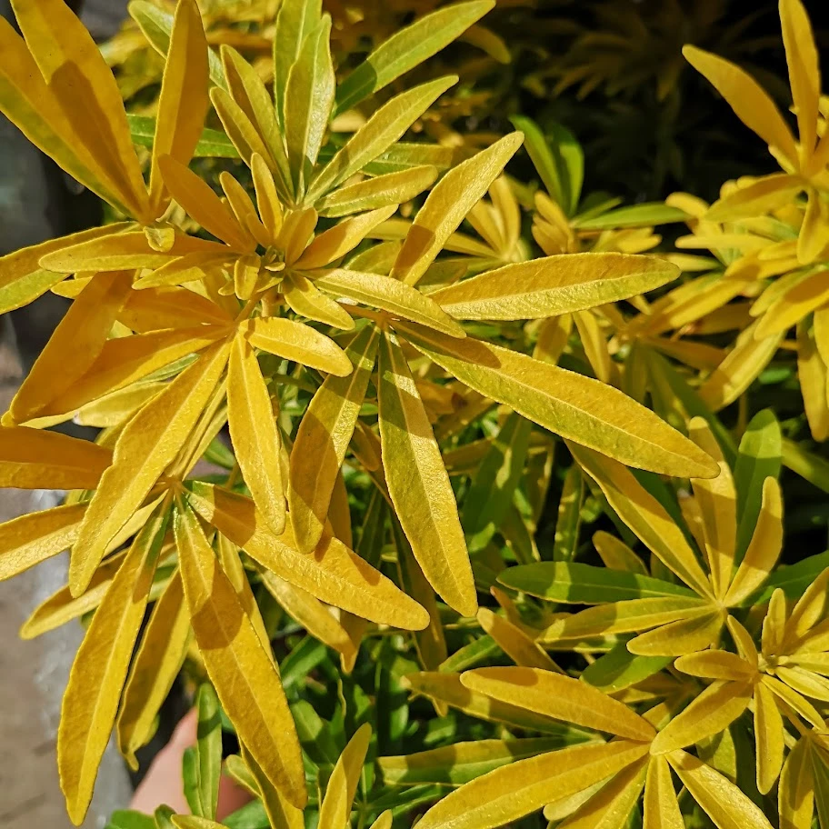 A hybrid, scented shrub with vivid yellow colouring, Choisya ternata Gold Star is a medium-sized, fast-growing, evergreen shrub with a rounded habit. The golden emerging leaves are palmate (narrowly hand-shaped) and aromatic. Corymbs of white flowers, scented of orange blossom, appear between March and May, and again in September to October. Mexican Orange Blossom Gold Star is a worthy successor to Choisya ternata Aztec Gold, but may suffer foliage damage in very severe winters. Good in a border against a green or purple background.