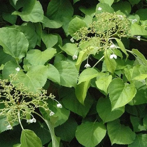 ‘Brookside Littleleaf’ is a vigorous, woody, semi-evergreen to evergreen climber with small, oval, deeply serrated, dark green leaves. Good for shade but will also grow in full sun. It bears broad, flattened clusters of lightly fragrant, white lace-cap flowers in summer.