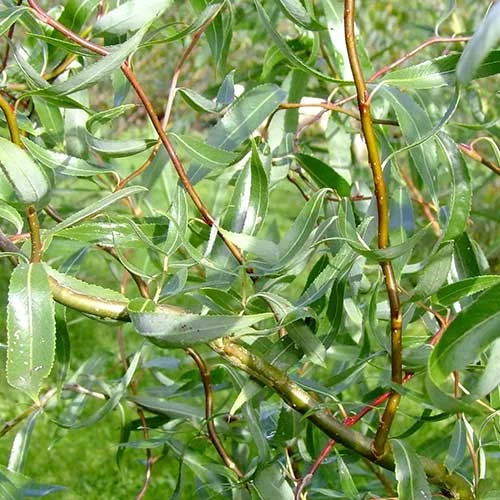Grown for its contorted, deep green, winter branches, twisted foliage and year-round interest, Salix x sepulcralis Dart’s Snake is a small, fast-growing, deciduous tree with an upright habit. The snaking branches show at their best in winter, while the narrow, glossy, mid-green leaves are also slightly twisted. In spring, yellow catkins dangle from the bare branches. Because of its wonderfully twisted branches, twisted willow Dart’s Snake shows best as a specimen tree, or as part of a border where it can take centre stage in winter. It can be pruned hard to keep it to size, and the prunings make striking ‘flower’ arrangements.