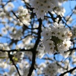 A popular cultivar of the native or long-established whitebeam, ideal for medium-sized gardens, Sorbus aria Lutescens is a medium-sized, deciduous tree, with an upright habit when young, rounding out as it ages. The oval leaves emerge silver in spring, becoming a distinctive grey-green as the juvenile downiness wears away, and turning yellow to russet in autumn. Flat clusters of foamy, creamy-white flowers are borne in May, a good nectar source for pollinators. These are followed by orange-red berries, a food source for birds. Whitebeam Lutescens holds the RHS Award of Garden Merit.