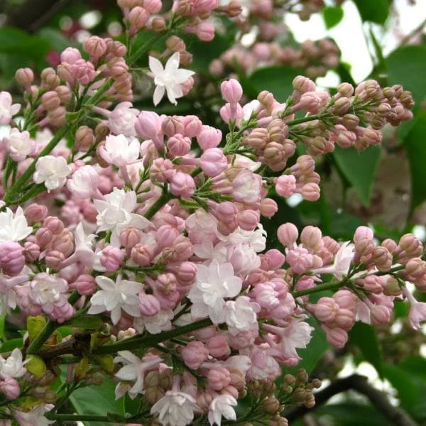 Tall shrub or small tree. Glossy green heart-shaped leaves are adorned by large panicles of pink buds which open to pale pink double flowers, ageing to near white in May or June. All Syringas are hungry and thirsty plants and should therefore be positioned with due consideration. Can be pruned hard to rejuvenate in mid-winter Some flowering may be lost after pruning as flowers are produced on two year old wood.